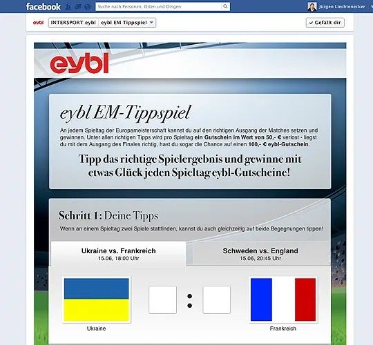 Die Europameisterschaft fesselt in den nächsten Wochen Fußballfans an den Fernseher und die Public Viewing Events werden gestürmt. Aber auch im Internet ist das Thema allgegenwärtig und wird diskutiert. Darum wurde für Intersport eybl ein EM-Tippspiel entwickelt, bei dem die sportlichen und fußballinteressierten Fans jeden Tag die richtigen Ergebnisse tippen können.
