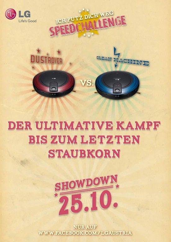 Das eher trockene Thema Staubsauger soll für die moderne und technikaffine Zielgruppe der LG Electronics Austria und LG Electronics Switzerland Facebook Fanpages in einer Social Media Kampagne aufgelockert und unterhaltsam dargestellt werden. Auf spannende Weise soll ein LG Produkt vorgestellt werden, das sonst weniger im Fokus der online Kommunikation steht. Nur wie begeistert man für ein Haushaltsgerät wie Staubsauger? Mit einem Wettsaugen!