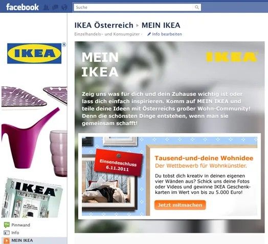 Ein Kommunikations- und Umsetzungskonzept für eine Facebook Fanpage für IKEA Österreich inklusive Training, um die Fanpage in weitere Folge intern betreuen zu können und Set Up der Fanpage mit Landing Tabs und einer universellen Gewinnspiel Applikation.