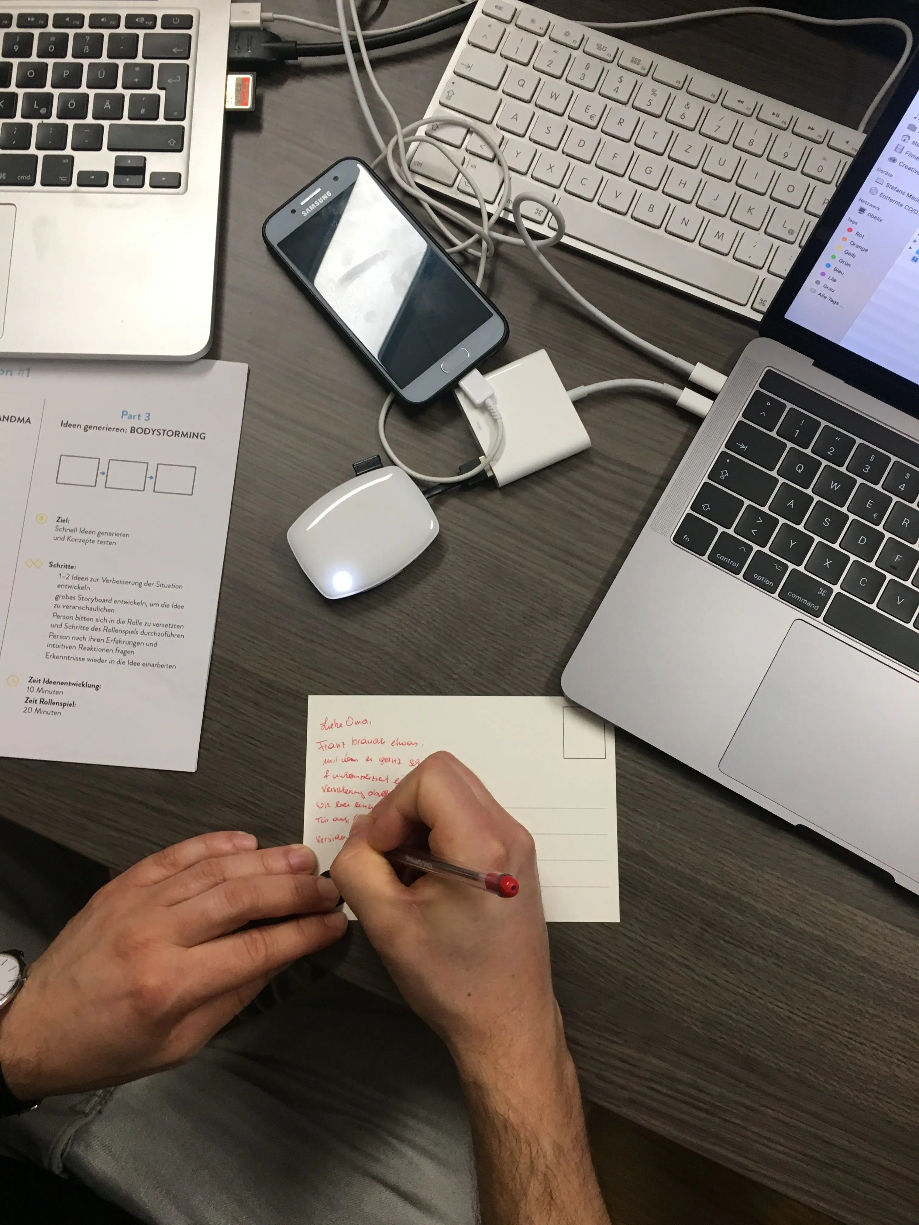 Nachdem jede Person eine Customer Journey ihres Partners erstellt hatte, ging es im zweiten Schritt darum, aus den negativen Punkten der Journey das „größte Problem“ zu identifizieren und dieses mittels der Methode „Postcard to Grandma“ in ein einfaches und prägnantes Projektziel umzuformulieren.