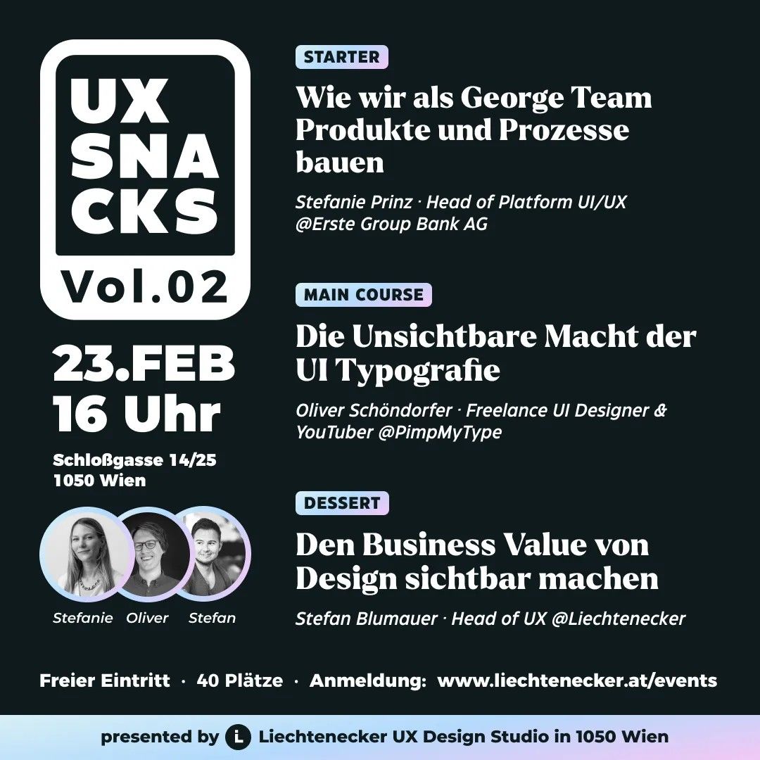 Komm vorbei zu UX Snacks Vol. 02 zum Inspirieren, Philosophieren und Freundschaften bilden. Wir freuen uns auf dich 😊