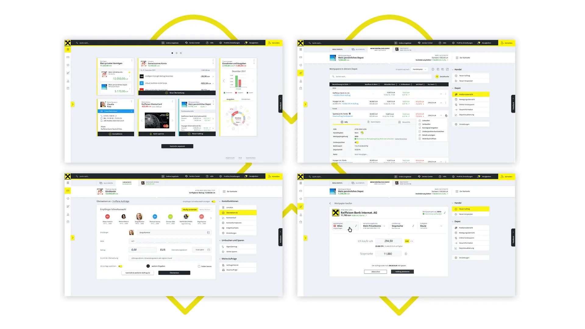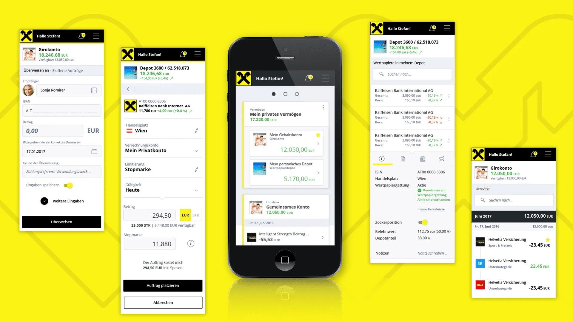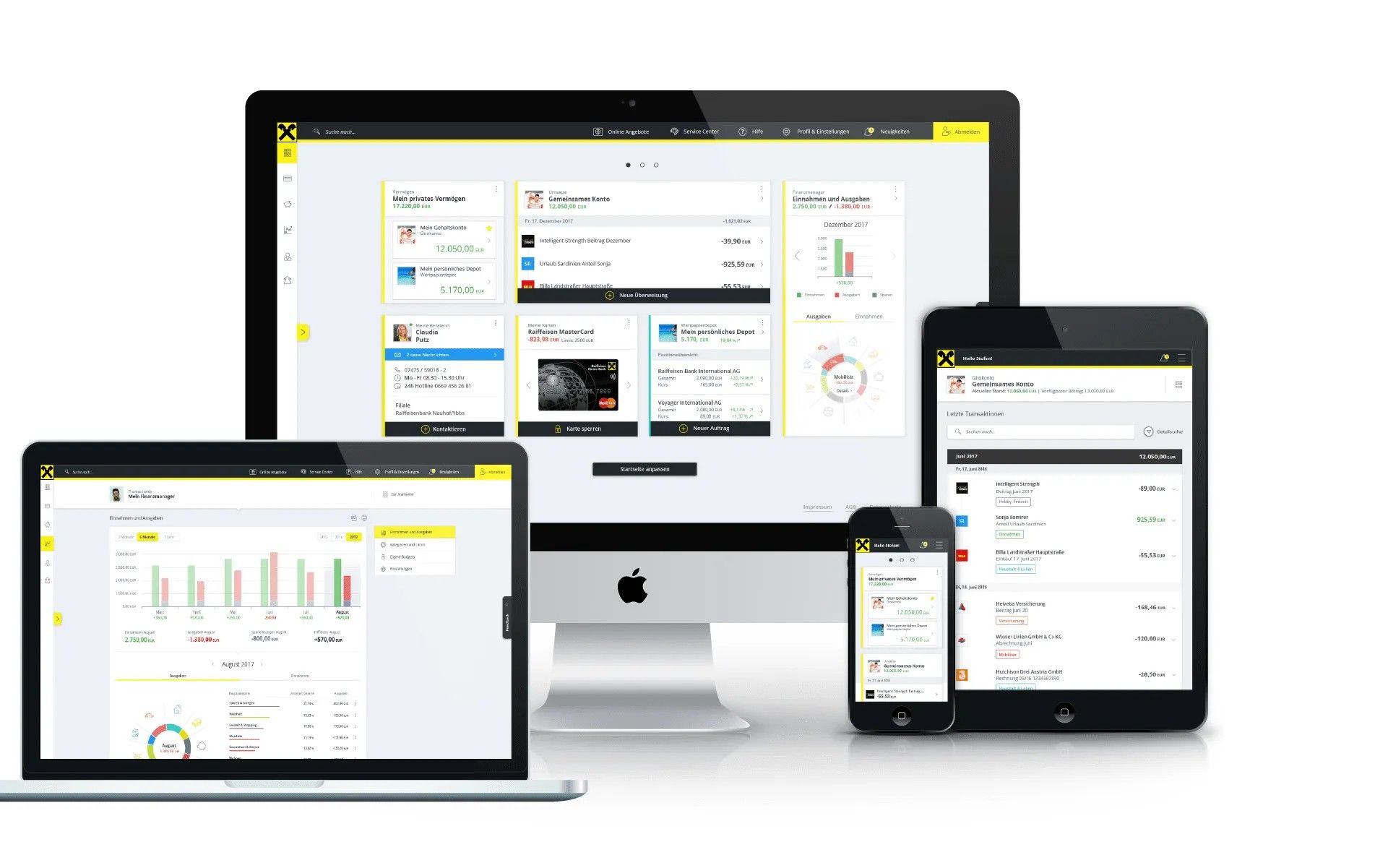 Die Raiffeisen Bank verfügt über ein extrem breites Spektrum an Angeboten, Funktionen und Themenbereichen. Wir wussten, dass wir hier vor der Herausforderung stehen, ein gigantisches Rahmenwerk zu entwerfen, das all diese Themen beherbergen muss. Zudem war es überaus wichtig, dass die Bedienung simpel und selbsterklärend ist, sowie Nutzung und Optik über alle Bereiche hinweg konsistent sind.