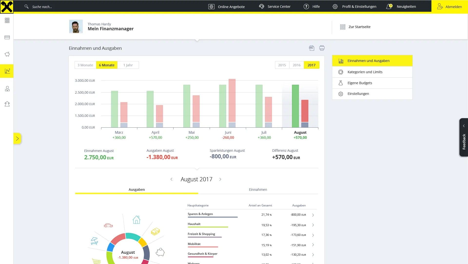 Mit dem neuen Finanzmanager kommen die User von Mein ELBA in den Genuss vom innovativsten Neuzugang.
