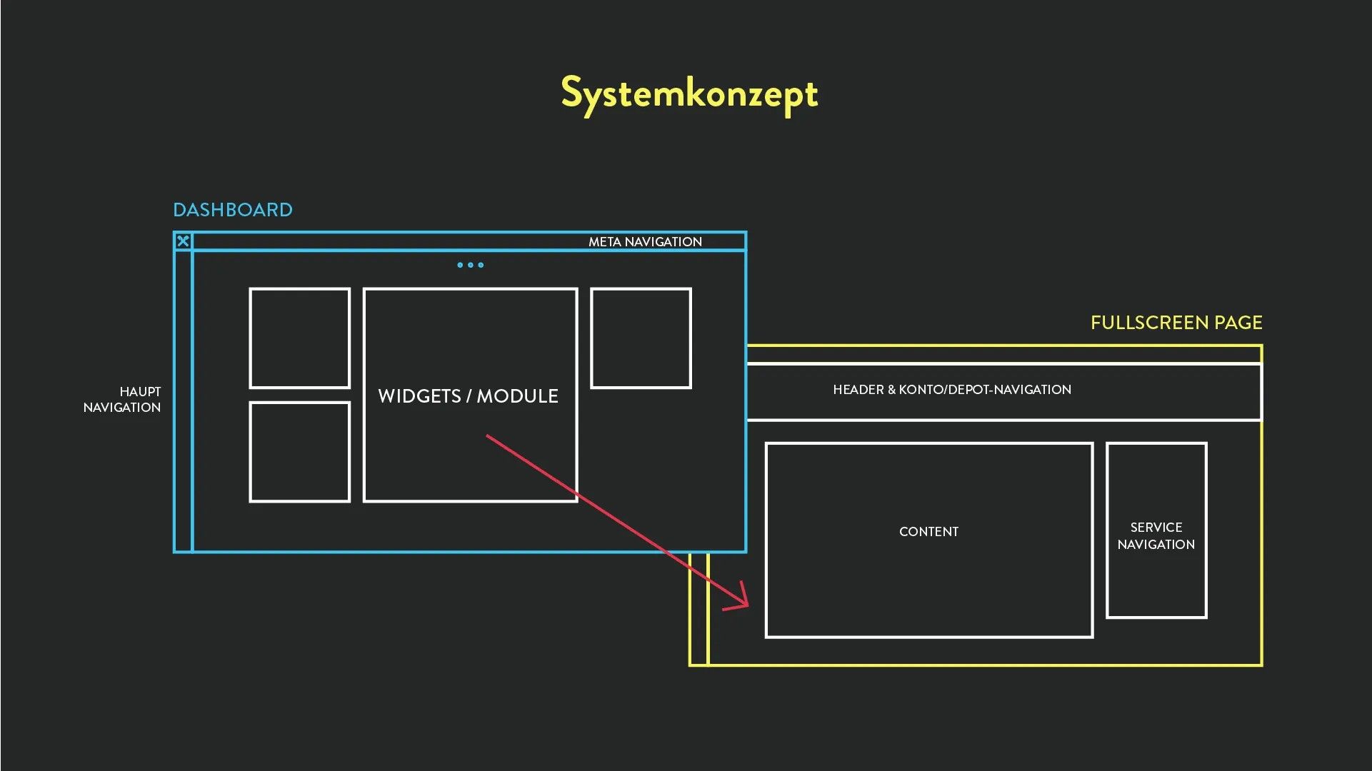 Ausgehend von unserem Click-Dummy, den daraus gewonnenen Nutzungs-Erkenntnissen und unserem immer breiter und tiefer werdendem Wissensstand über die fachlichen Anforderungen an das neue Banking System, entwarfen wir das grundlegende Systemkonzept für Mein ELBA.