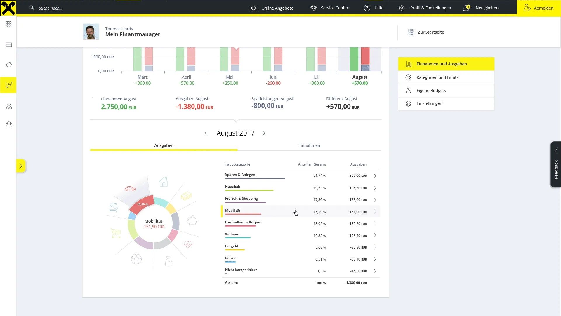 Die Kategorisierung bildet den Grundstein für darauf aufbauende intelligente Instrumente um seine Finanzen vollständig im Griff zu haben.