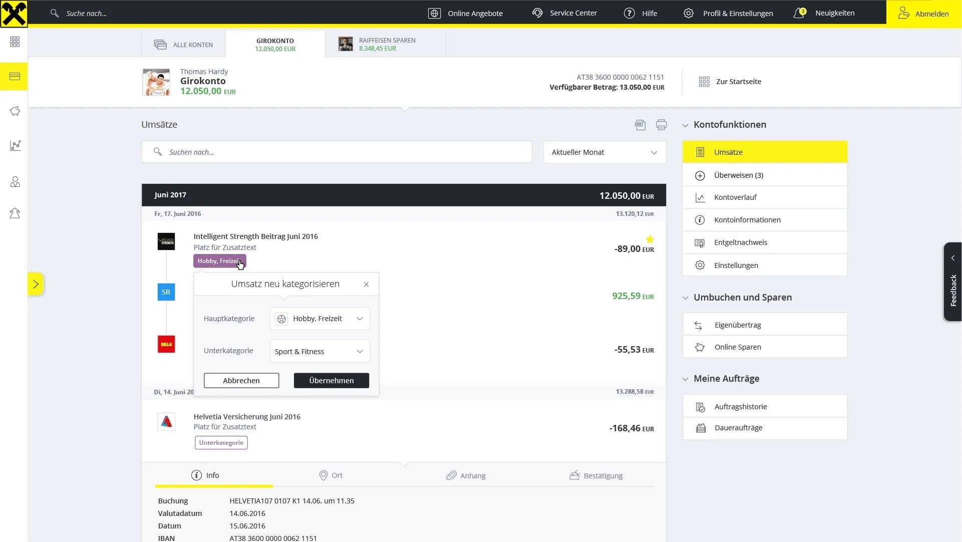 Umsätze werden von nun an automatisch Kategorien zugeordnet. Den Usern bleibt die Möglichkeit, die Kategorisierung der Umsätze nachträglich anzupassen.