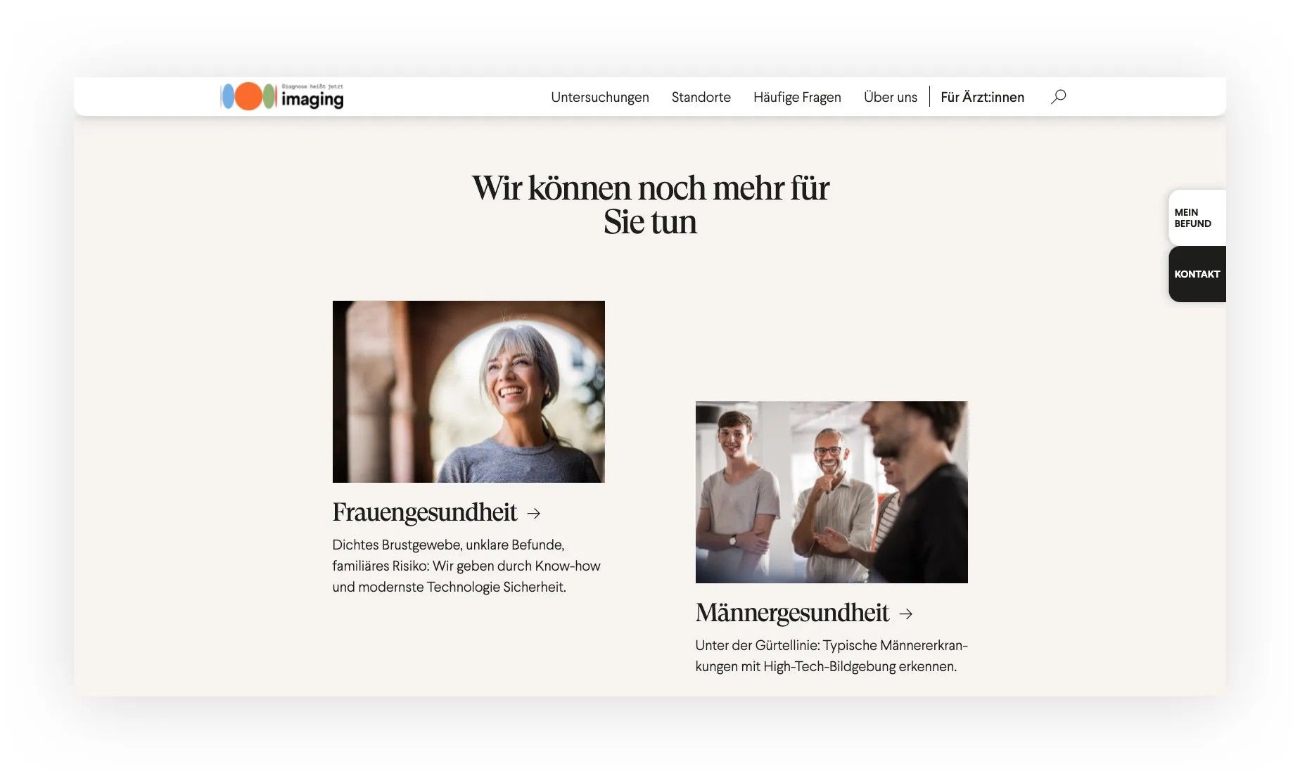 PatientInnen vertrauen ihre Gesundheit den imaging-ExpertInnen an. Die Website spielt bei dieser Vertrauensbildung eine wichtige Rolle.