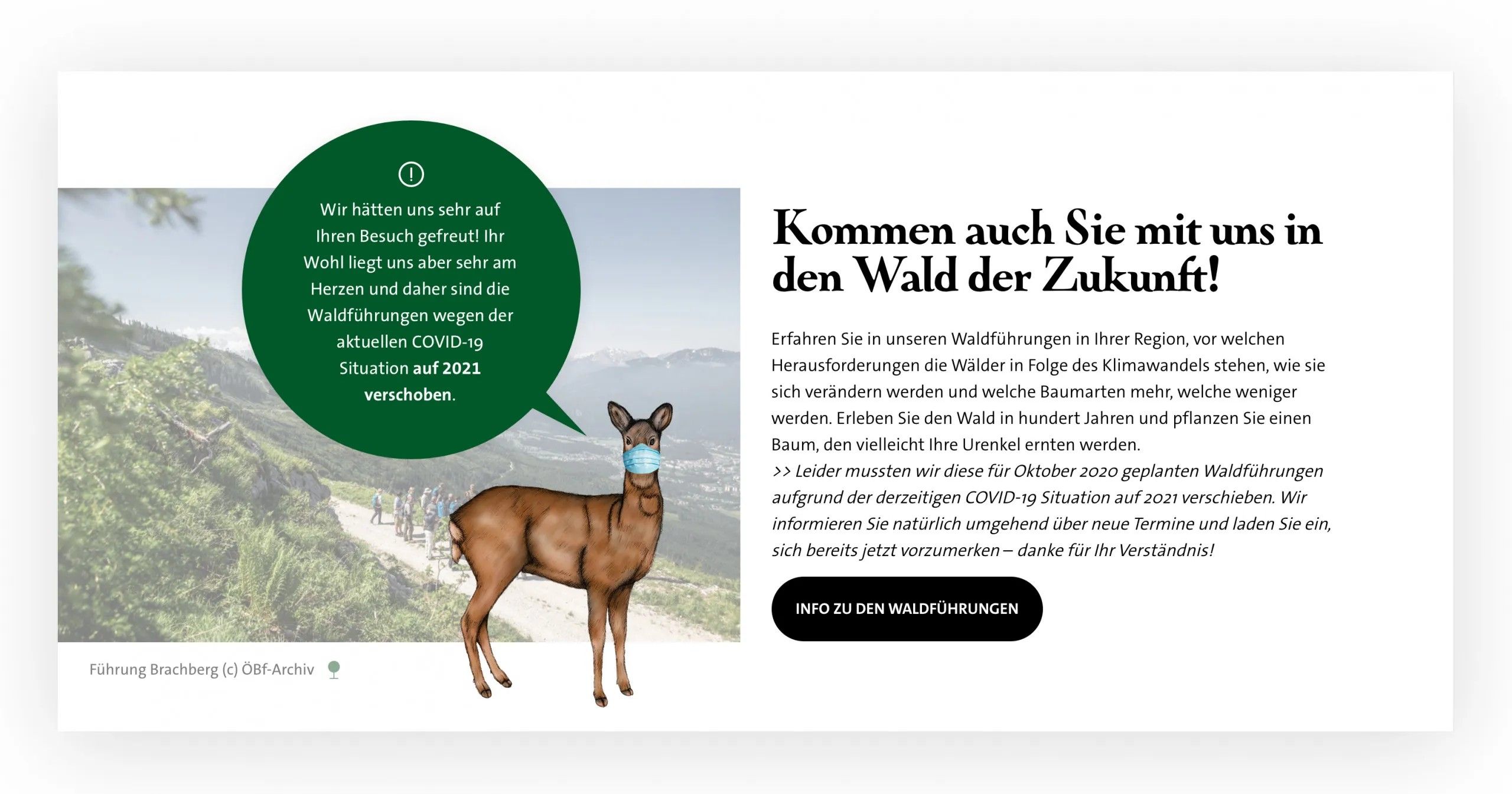 Zu Beginn des Jahres 2020 wandten sich die Österreichischen Bundesforsten mit dem Projektvorhaben an uns, eine Themenseite zum Wald der Zukunft zu kreieren. Wir haben sie bei der Konzeption und Umsetzung unterstützt und begleiten das Projekt nun auch weiter. Wie wir das Projekt in diesem turbulenten letzten Jahr gemeinsam auf die Beine gestellt haben und welche spannenden Ergänzungen noch kommen, lest ihr hier.