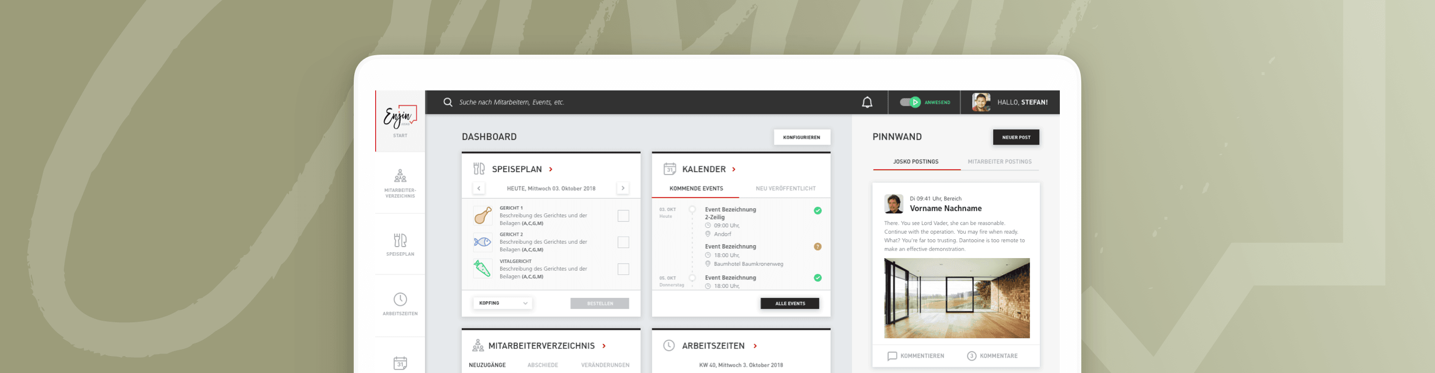 Bei der Entwicklung von ENJIN war uns wichtig, dass auch wirklich alle Details für uns stimmen: keine Software von der Stange, sondern eine Anwendung, die exakt für unsere Anforderungen, Wünsche und Prozesse passt und weiterentwickelt werden kann. Natürlich mit einem hohen Anspruch an Design, Performance und User-freundlichkeit, kurz gesagt die berühmte User ExperienceStefan Hafner, MSc., Digital Project Manager JOSKOHausgemacht