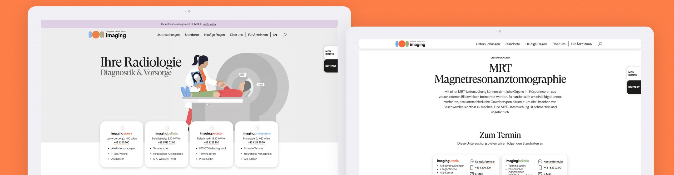 Meist werden PatientInnen von ihren Ärzt:Innen an Radiologieinstitute überwiesen, um Befunde für eine weiterführende Diagnose zu erhalten. Die wichtigste Funktionalität auf der neuen imaging-Seite ist es daher, eine einfache Kontaktmöglichkeit für die Terminbuchung zu bieten.