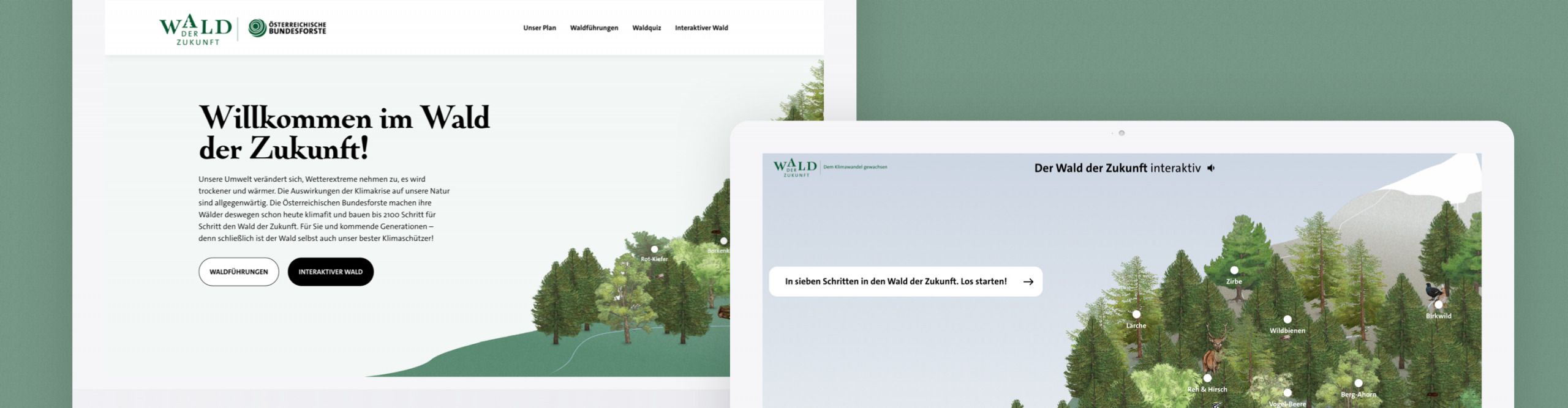 Die Bundesforste hat bereits eine definierte CI, die wir schon für den Website-Relaunch der Hauptseite verwendeten. Die neue Themenseite sollte optisch zum Unternehmen gehören, sich aber doch etwas abheben. Das Logo „Wald der Zukunft“ lag bereits vor.